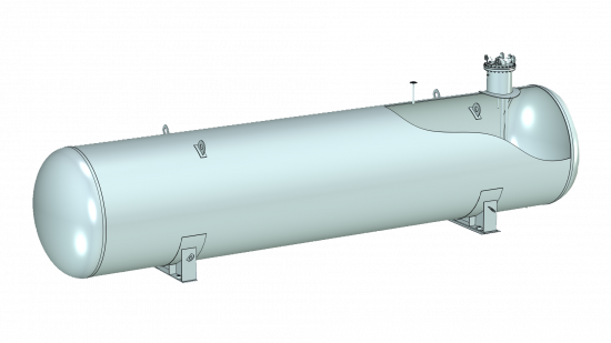 Емкость для сжиженного газа представляет собой горизонтальный цилиндрический сосуд с эллиптическими днищами, который имеет несколько штуцеров (для наполнения, отбора жидкой и газовой фазы, для установки уровнемера и предохранительного клапана, для люка и т.д.)